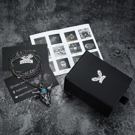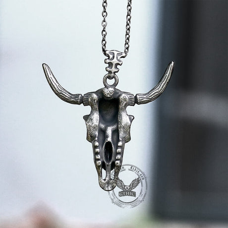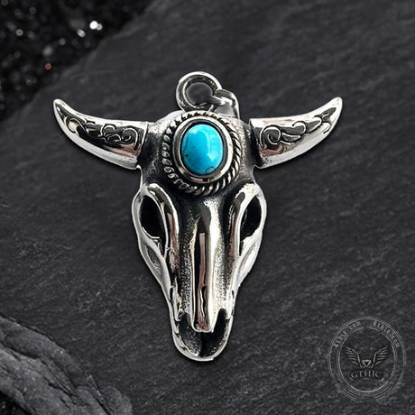Bull Head Skull Stainless Steel Turquoise Pendant