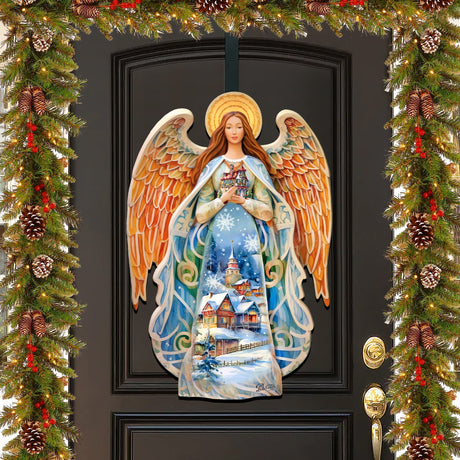 Blue Floral Angel Holiday Door Decor by G. Deb...