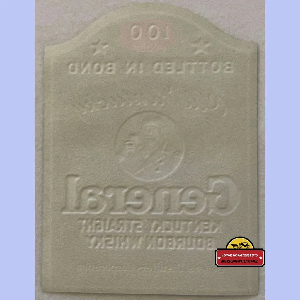 Step back in time and immerse yourself in the intoxicating world of Prohibition-era whiskey with the extraordinary Antique Vintage 1930s Embossed General Old Kentucky Bourbon Whiskey Label from Louisville! This rare and coveted piece of history isn't just a label – it's a portal to the roaring twenties and the golden age of bourbon craftsmanship. Measuring a compact yet impactful 4 3/4 x 3 1/2 inches, this vintage 1930s embossed label packs a punch of historical significance and artistic brilliance.