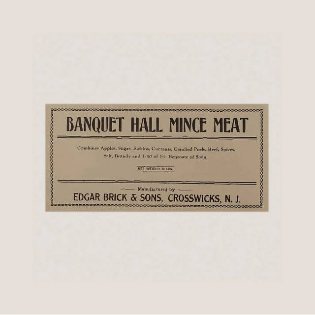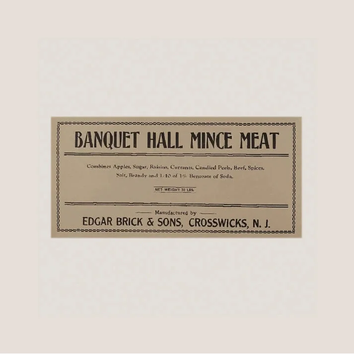 But there's more to this piece than meets the eye! Delve into the fascinating history behind the brand - Edgar Brick and Sons, hailing from the quaint town of Crosswicks, New Jersey. What set their mincemeat apart from the rest? The secret ingredient: real brandy! This bold addition not only enhanced the flavor but also ensured customer loyalty, making their mincemeat a coveted and staple American dish during the tumultuous years of Prohibition. Picture the excitement and intrigue as families discreetly savored this spirited treat, adding a dash of rebellion to their holiday feasts!