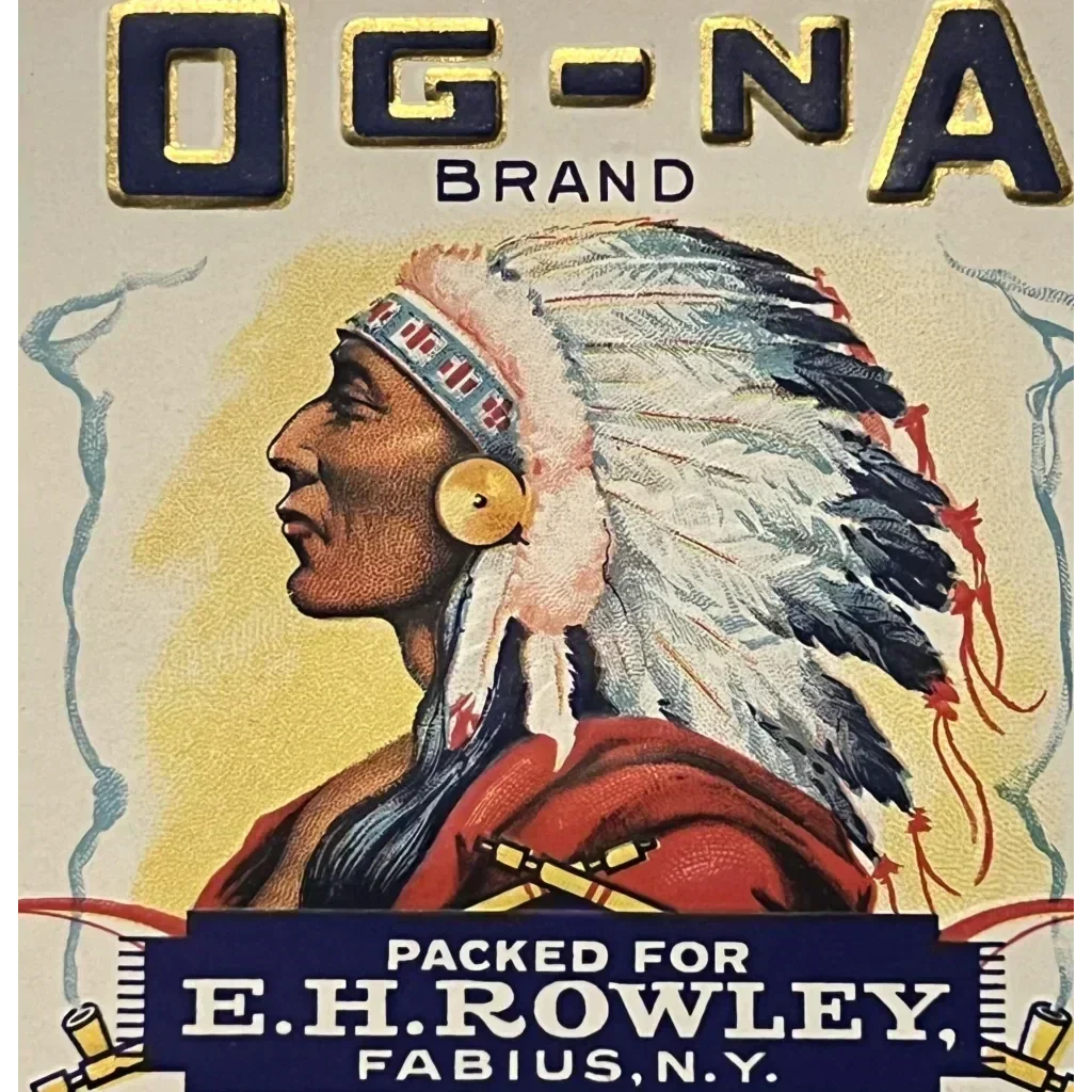 Rare 1920s Native American Antique Gold Label from Fabius NY