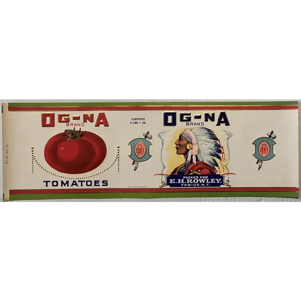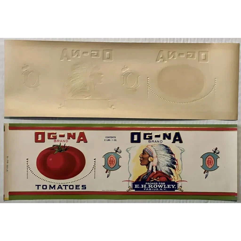 Step back in time with this extraordinary piece of Americana - the Antique 1920s Og - Na Gold Embossed Can Label from Fabius, New York! This rare treasure boasts little to no edge wear, making it a true collector's dream. Please note because of size I ship in a tube and USPS just put a $4 charge to use tubes hence the price increase until I can find a work around.
