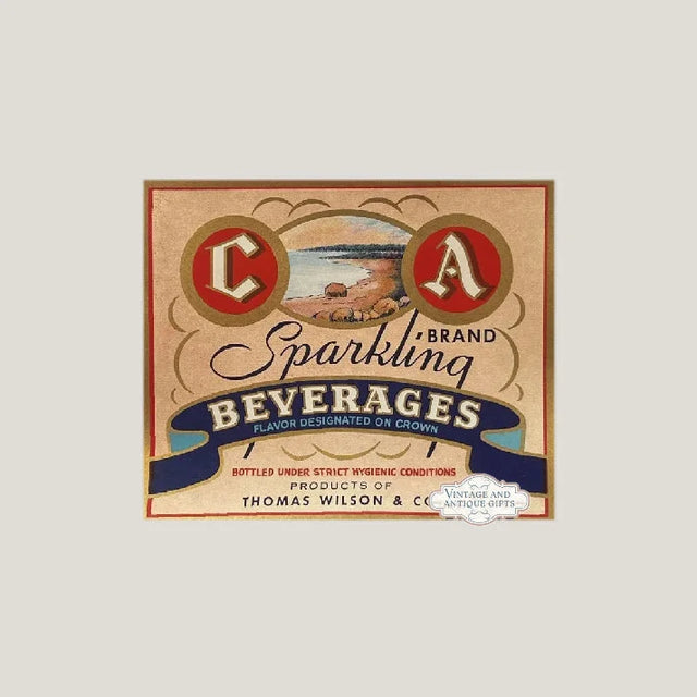 Antique Vintage C A Sparkling Beverages Label, 1930s - Thomas Wilson and Co.