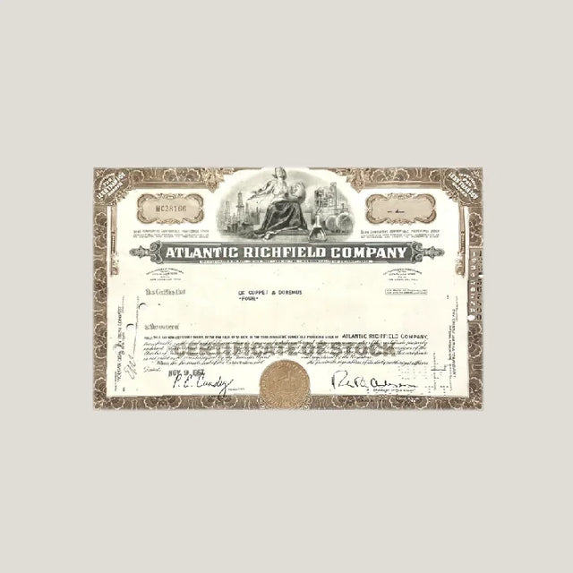 Vintage 1960s Atlantic Richfield Stock Certificate, Brown, Oil Americana - A Thrilling Piece of Financial History!
