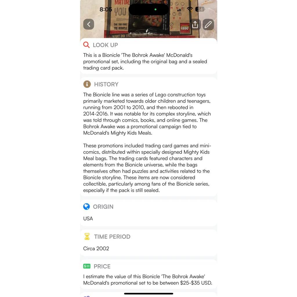 BIONICLE wasn't just any old toy line - it was a revolution! Launched in 2001 as part of LEGO's Technic series, it quickly became a phenomenon that helped save LEGO from financial doom. Aimed at kids aged 8 to 16, BIONICLE was more than just plastic bricks - it was an entire universe waiting to be explored. This Happy Meal bag is a portal to that universe, a relic from BIONICLE's heyday that lasted nearly a decade before its initial discontinuation in 2010.