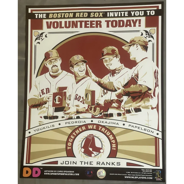 Get ready to experience the thrill of Red Sox Nation with this incredibly rare MLB Boston Red Sox poster featuring four legendary players: Dustin Pedroia, Kevin Youkilis, Jonathan Papelbon, and Hideki Okajima! This limited-edition 2008 official poster is your ticket to join the triumph of Boston's beloved baseball team. As any true New Englander knows, the Red Sox and Dunkin' Donuts are an inseparable duo, as iconic as peanut butter and jelly!