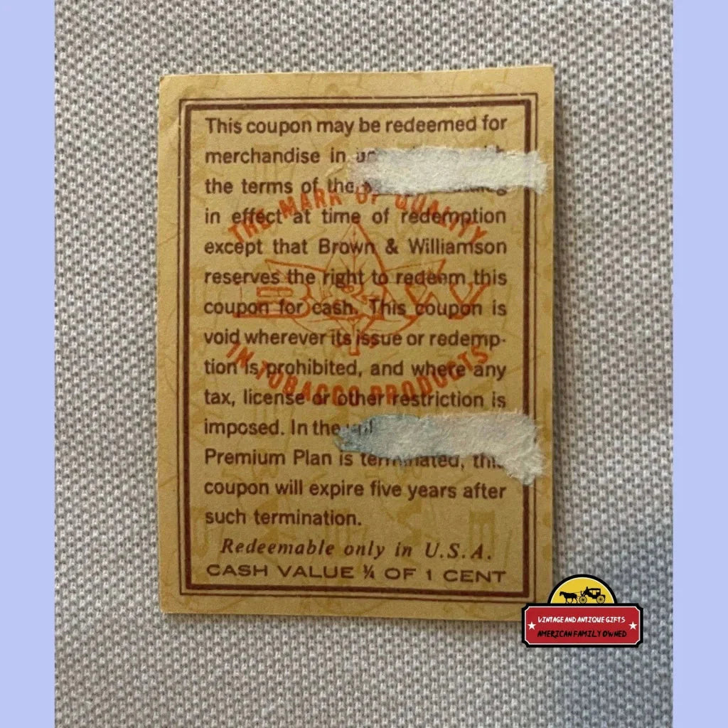 • Invaluable History: Each piece holds immeasurable historical value, addressing queries like, “are Raleigh cigarette coupons worth anything?” and whether B&W coupons remain redeemable.