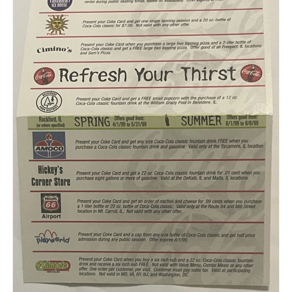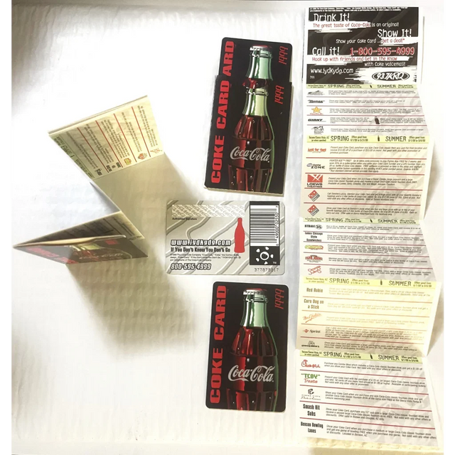 But wait, there's more! This isn't just any ordinary limited edition soda card – it's a treasure trove of savings and memories. Packed with valuable coupons from iconic American brands and beloved local businesses, this card offers a glimpse into the everyday life and consumer culture of the 1990s. It's like holding a time capsule in your hands! 🎁