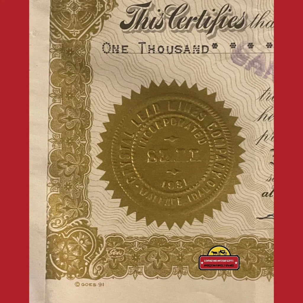 Antique vintage stock certificates like this Crystal Lead Mines gem are increasingly rare, making them highly sought-after by collectors and history enthusiasts alike. Crafted from durable, high-quality paper stock, these certificates have withstood the test of time, preserving their vibrant colors and intricate designs for decades. Each certificate bears the authentic signatures of company officials, adding a personal touch and enhancing its historical value. By displaying this vintage collectible in your home or office, you're not only showcasing a stunning piece of art but also paying homage to America's industrial heritage and the brave individuals who shaped it.