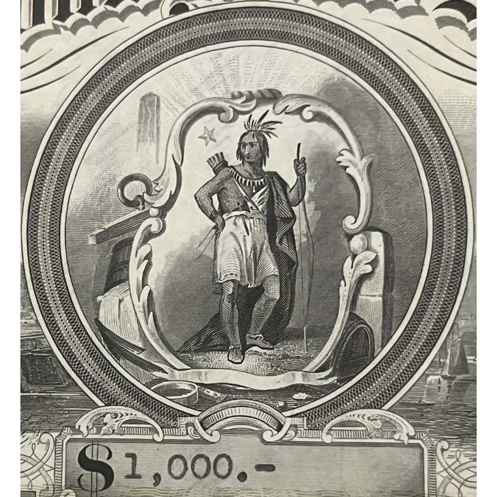 Handcrafted by skilled artisans during the golden age of American railroads, this stock certificate exemplifies the timeless craftsmanship that defined an era. The impeccable attention to detail on this beautifully aged piece is truly awe-inspiring, from the ornate border to the bold typography. It's not just a document; it's a work of art that demands attention and admiration.
