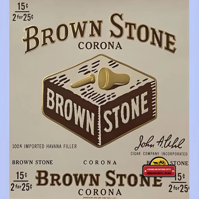 Marvel at the intricate gold embossing that adorns this label, a testament to the luxurious practices of yesteryear. Real gold flakes shimmer in the design, catching the light and captivating the eye - a common yet awe-inspiring technique employed by prestigious companies of that era. This Brown Stone Corona label exemplifies the pinnacle of cigar branding from the 1900s to 1920s.