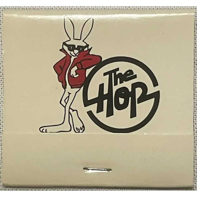 Prepare to be dazzled by the matchbook's eye-popping graphics that truly set it apart from the crowd! The design is a visual feast, featuring a vibrant, technicolor outline of a too-cool-for-school rabbit sporting a sleek red leather jacket and attitude-packed sunglasses. This isn't just a matchbook; it's a time capsule that captures the essence of The Hop Night Club's electric atmosphere and the swinging style of Los Angeles' golden age of nightlife.