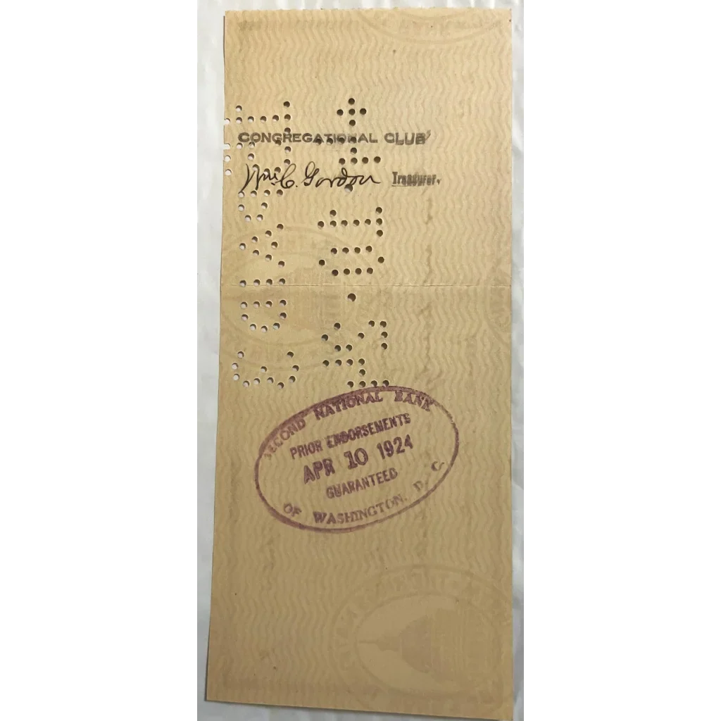 Step into the annals of American financial history with this extraordinary piece - an antique Riggs National Bank check from the early 1900s to 1924! This isn't just any old bank check; it's a tangible slice of the past from the most famous bank in the entire American banking institution of its time. Imagine holding in your hands a document that once played a part in the financial transactions that shaped our nation!