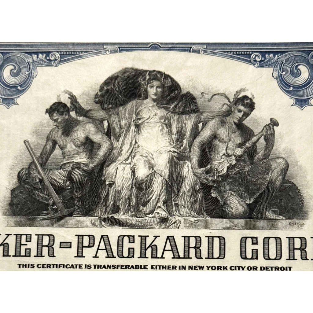 Rare Studebaker-Packard Stock Certificate Blue Beauty from 1950s
