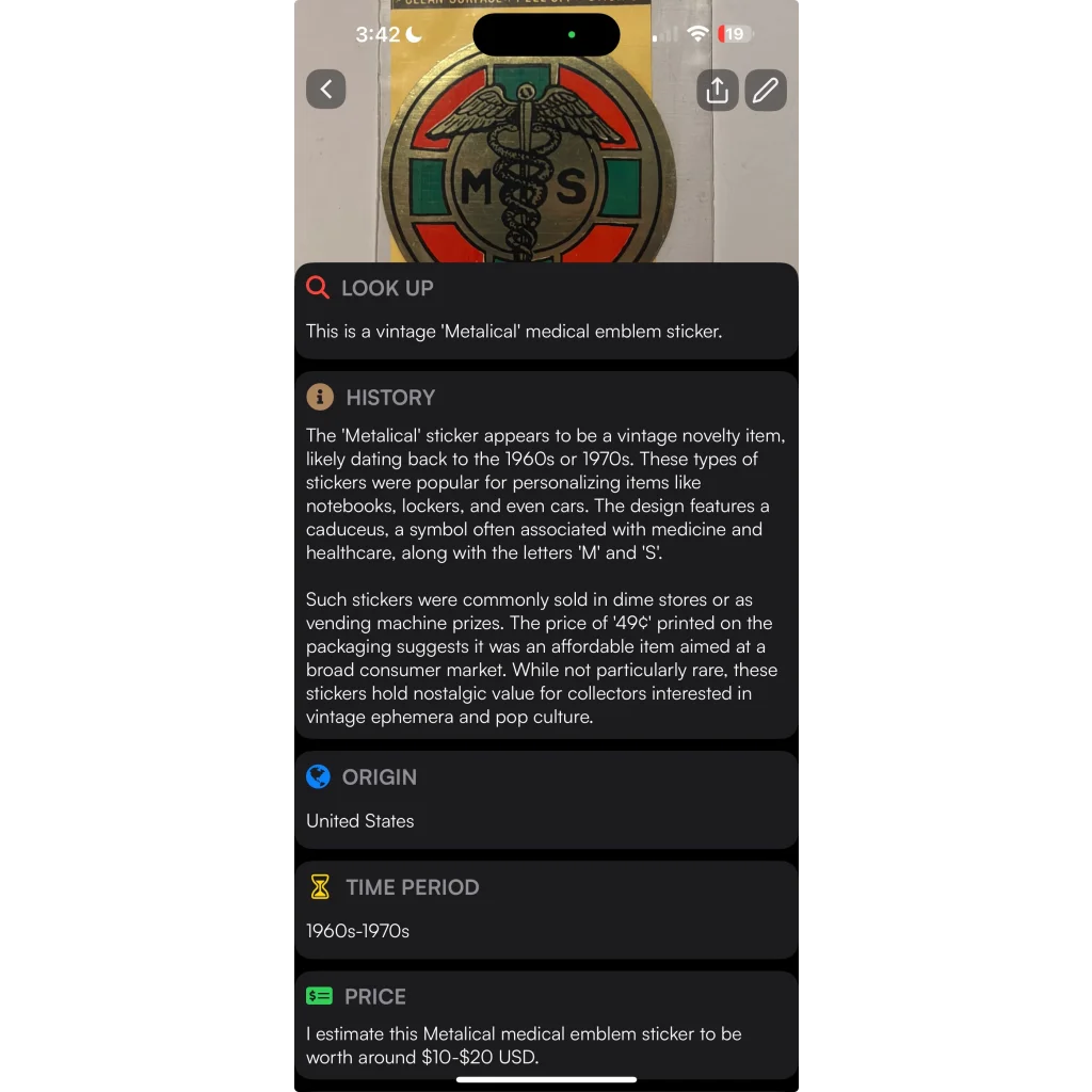 But wait, there's more! In this age of technological marvels, we're offering an AI-generated report on this 1960s medical caduceus decal absolutely free! This cutting-edge analysis provides deeper insights into the item's provenance, adding even more value to this already priceless piece of memorabilia. Don't forget to check out the detailed pictures – they're an integral part of the item's description and will leave you in awe of its vintage charm.