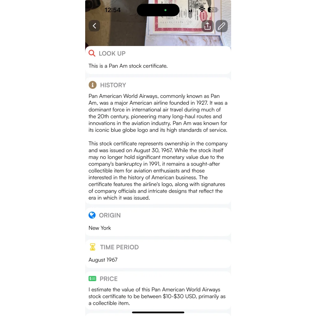 Since the advent of AI, I can also give the item more provenance for you by providing the Curio AI report of the item free of charge so you can access and see the investment opportunity of this listing, as of this writing. The value only increases on these unique pieces of rare memorabilia. Please refer to the pictures. This stock I grabbed for analysis so year and owner are particular to this stock.