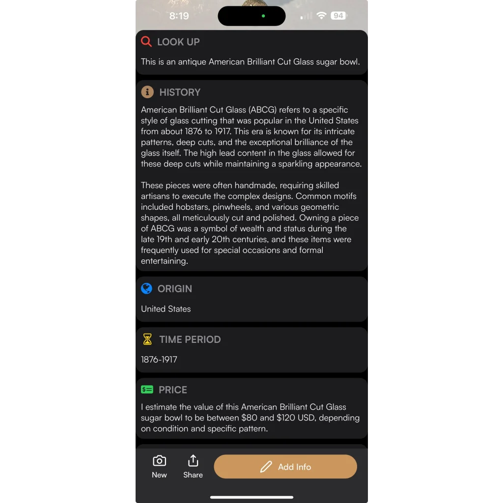 American Brilliant Cut Glass (ABCG) represents the absolute pinnacle of glass artistry that dominated America from 1876 to 1917! This isn't just any ordinary glassware - we're talking about museum-quality brilliant cut glass that literally transforms light into dazzling rainbows with every turn. The secret behind this mesmerizing sparkle? An incredibly high lead content formula that not only creates that signature brilliant cut brilliance but also gives artisans the perfect canvas for their most intricate masterpieces.