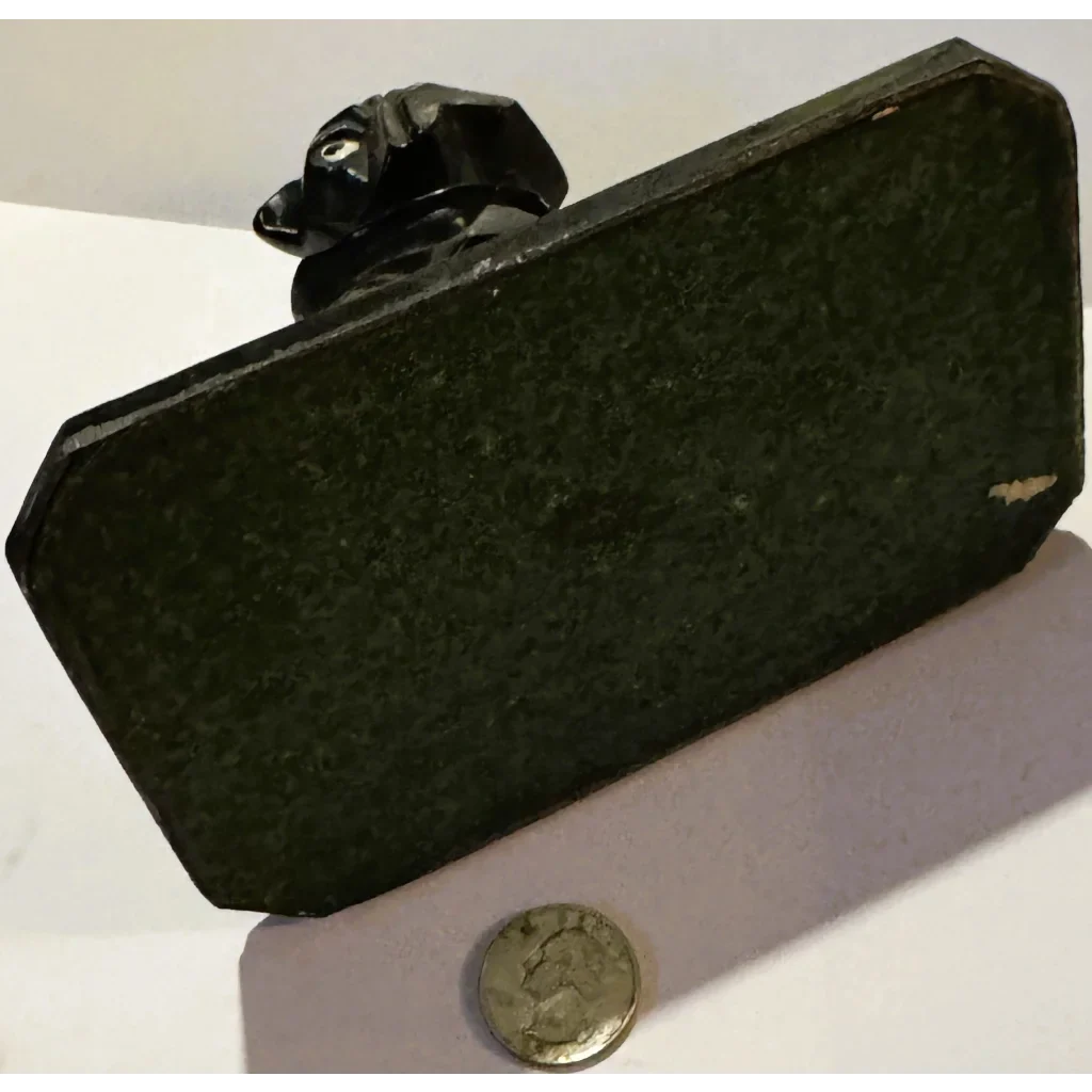 Prepare to be dazzled by this extraordinary piece of Art Deco history! The AI Scan reveals a truly captivating item that's not just a feast for the eyes, but a tangible connection to a bygone era. Weighing in at an impressive 1 3/4 pounds, this isn't your average desk accessory - it's a substantial piece of the past you can hold in your hands. Crafted from what feels like metal or another weighty material, this Art Deco bulldog (inkwell?) commands attention with its 6" x 4" base and stands proud at 5 1/2" tall. It's not just an inkwell; it's a time machine that'll transport you straight back to the Roaring Twenties! I spoke with a gemologist online, and she believed that after examining the listing, it was made of Kite, a truly unique substance.