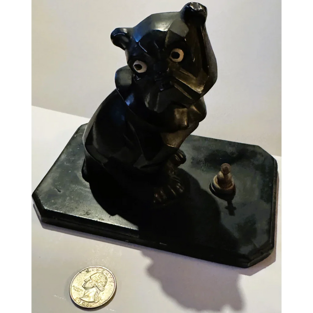 Imagine the stories this inkwell could tell! It's witnessed the birth of groundbreaking ideas, the signing of important documents, and perhaps even a love letter or two. This isn't just a desk accessory; it's a conversation starter, a piece of history, and a testament to the enduring appeal of Art Deco design. Whether you're a serious collector or just someone who appreciates the finer things in life, this bulldog inkwell is sure to be the crown jewel of your desk or display cabinet. It's more than just an inkwell - it's a time capsule of style, innovation, and the spirit of an unforgettable era!