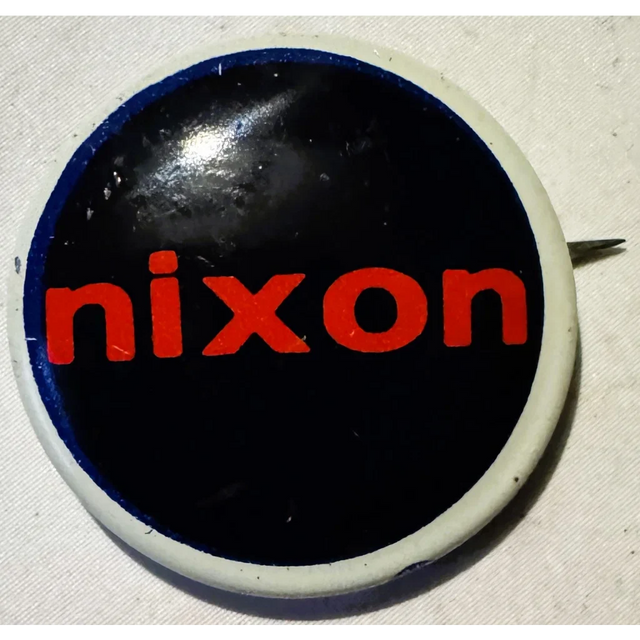 Feast your eyes on this 3/4" marvel, a genuine artifact from the swinging sixties! This vintage 1960s Richard Nixon pin is in tip-top shape, looking as fresh as the day it rolled off the campaign trail. With barely a scratch or scuff in sight, this little beauty is ready to take pride of place in your collection for years to come.