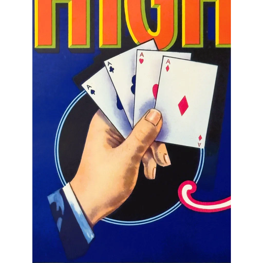 Get ready to be transported back in time with the captivating vintage 1970s High Hand Crate Label, a true gem created by the legendary Loomis Fruit Growers Association from Loomis, California! This isn't just any old label – it's a slice of Americana that'll make your heart race. Featuring a bold Poker, Four Aces design, this label is a jackpot for collectors and art lovers alike. It's not just a piece of paper; it's a portal to a bygone era of American agriculture and design!