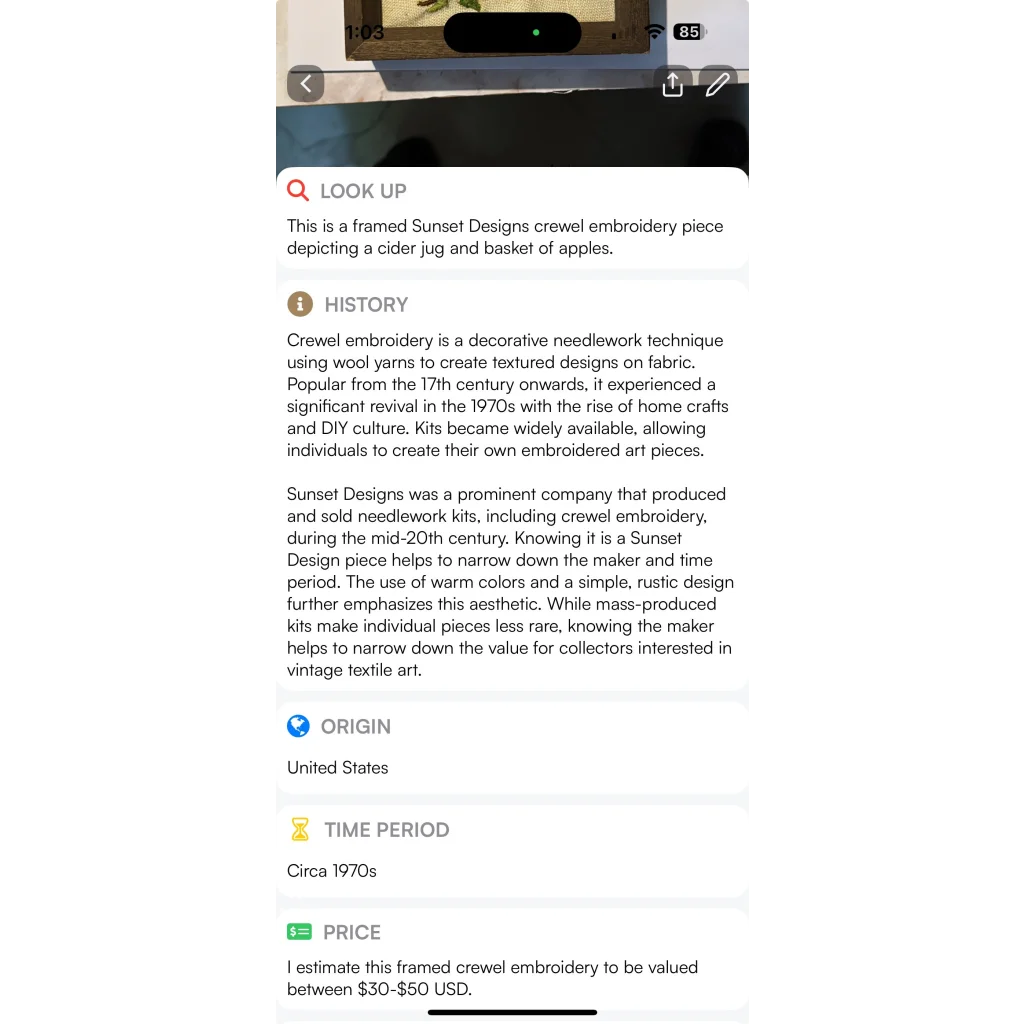 While these kits were mass-produced, don't let that fool you into thinking this piece isn't special. For collectors of vintage textile art, knowing that this is a genuine Sunset Designs creation is like striking gold! It helps pinpoint the exact era and maker, making it a valuable addition to any collection. Plus, each piece tells a unique story - the story of the person who carefully stitched each thread, pouring their creativity and passion into every detail.