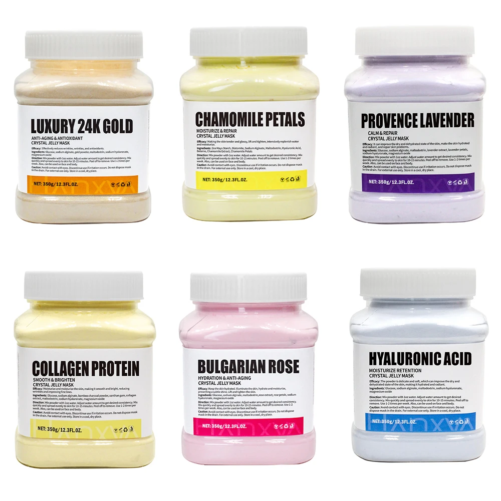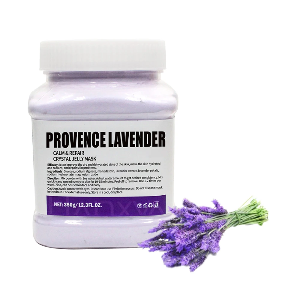 Mascarilla facial de gelatina en polvo de 350 g con cristales de rosa y lavanda, mascarilla facial de colágeno, mascarilla hidratante en polvo para el cuidado de la piel.