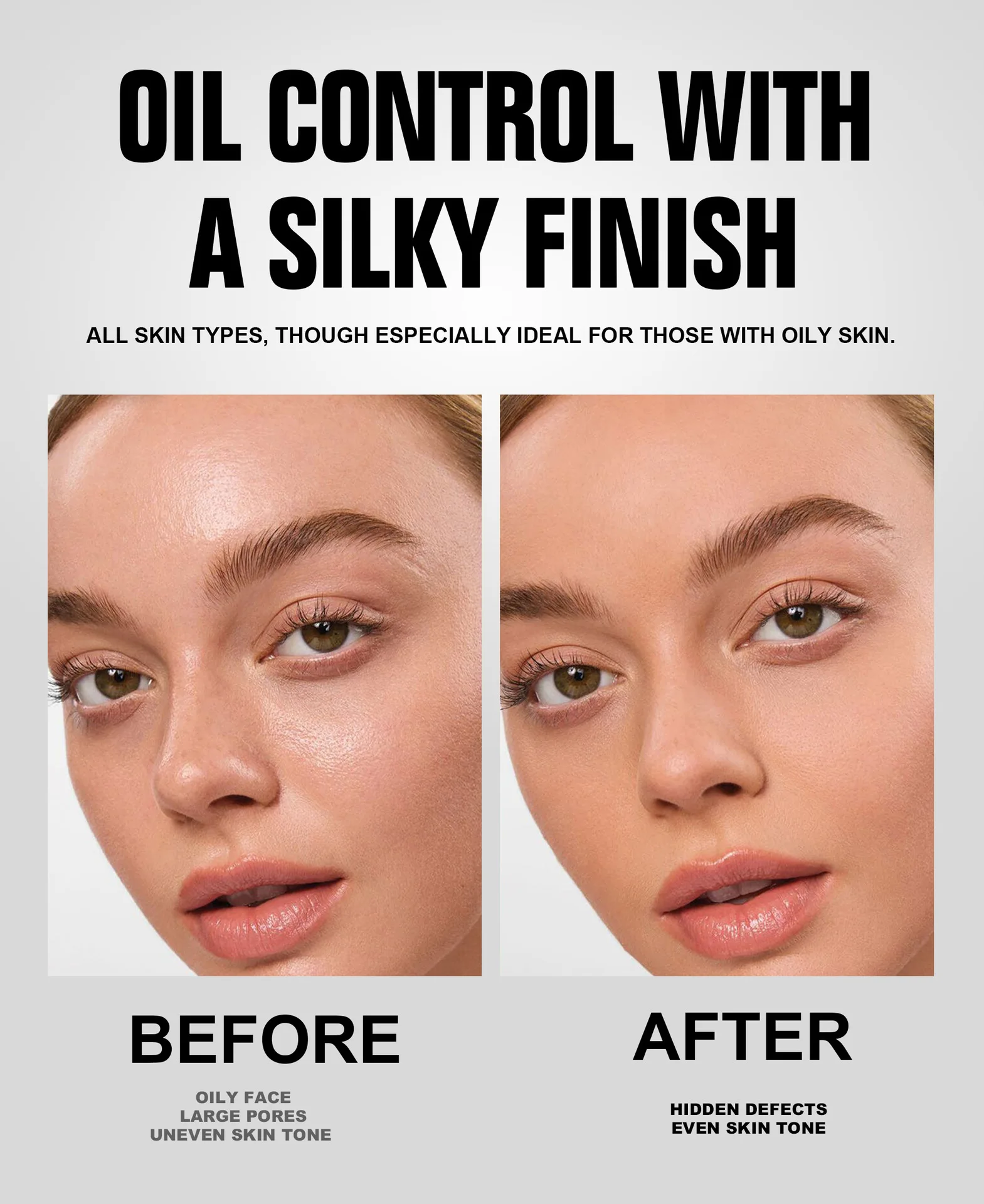 ☆Control de grasa con acabado sedoso.