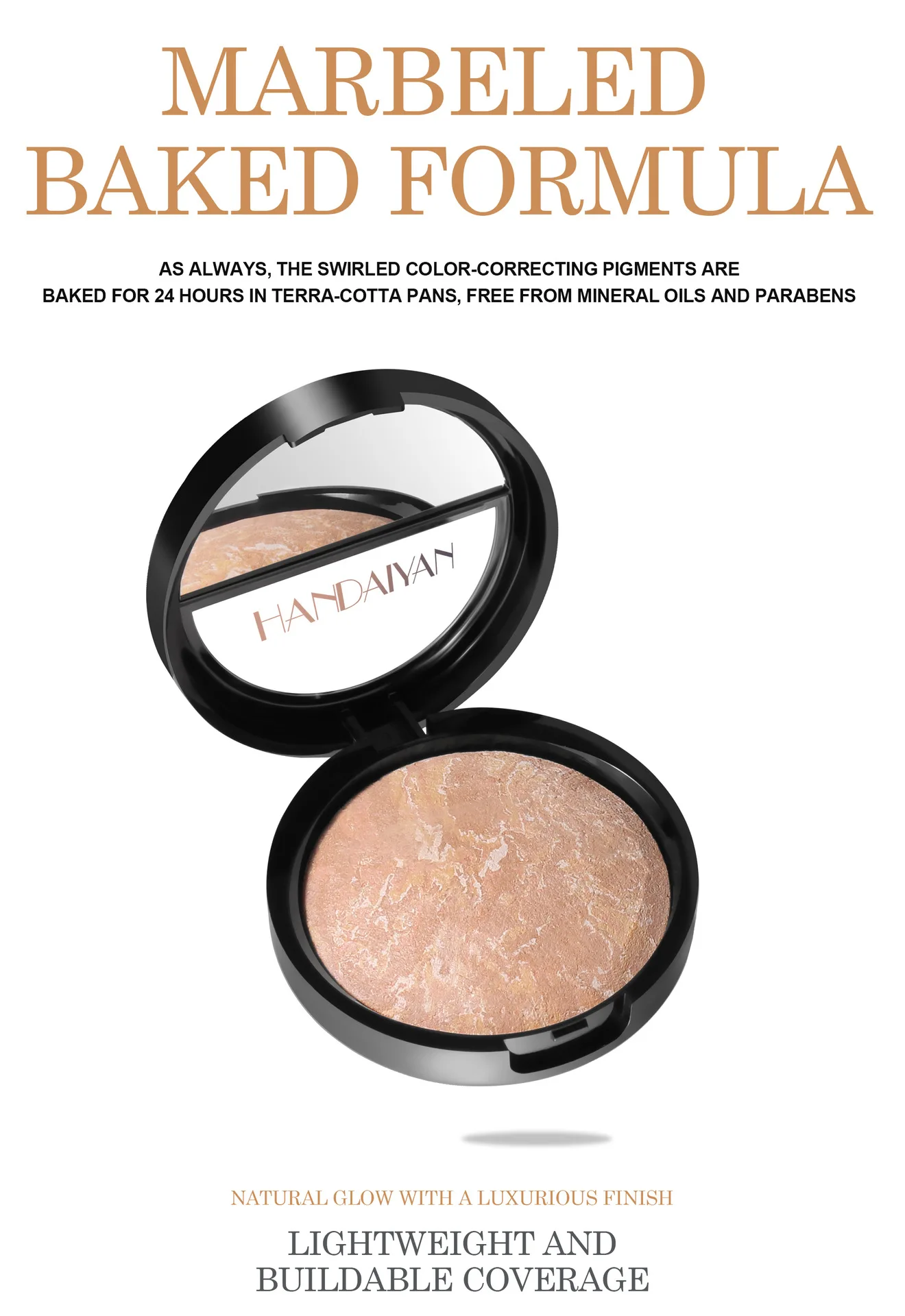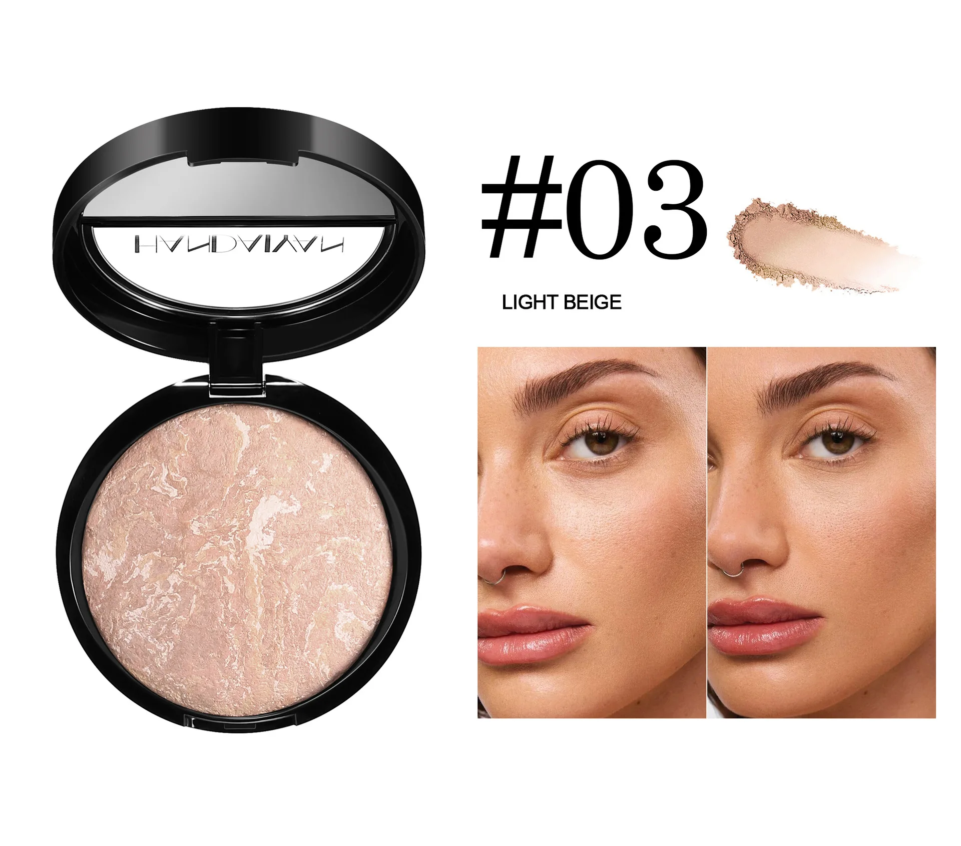 ☆Polvo horneado para base de maquillaje y iluminador con acabado luminoso en 1 cobertura media