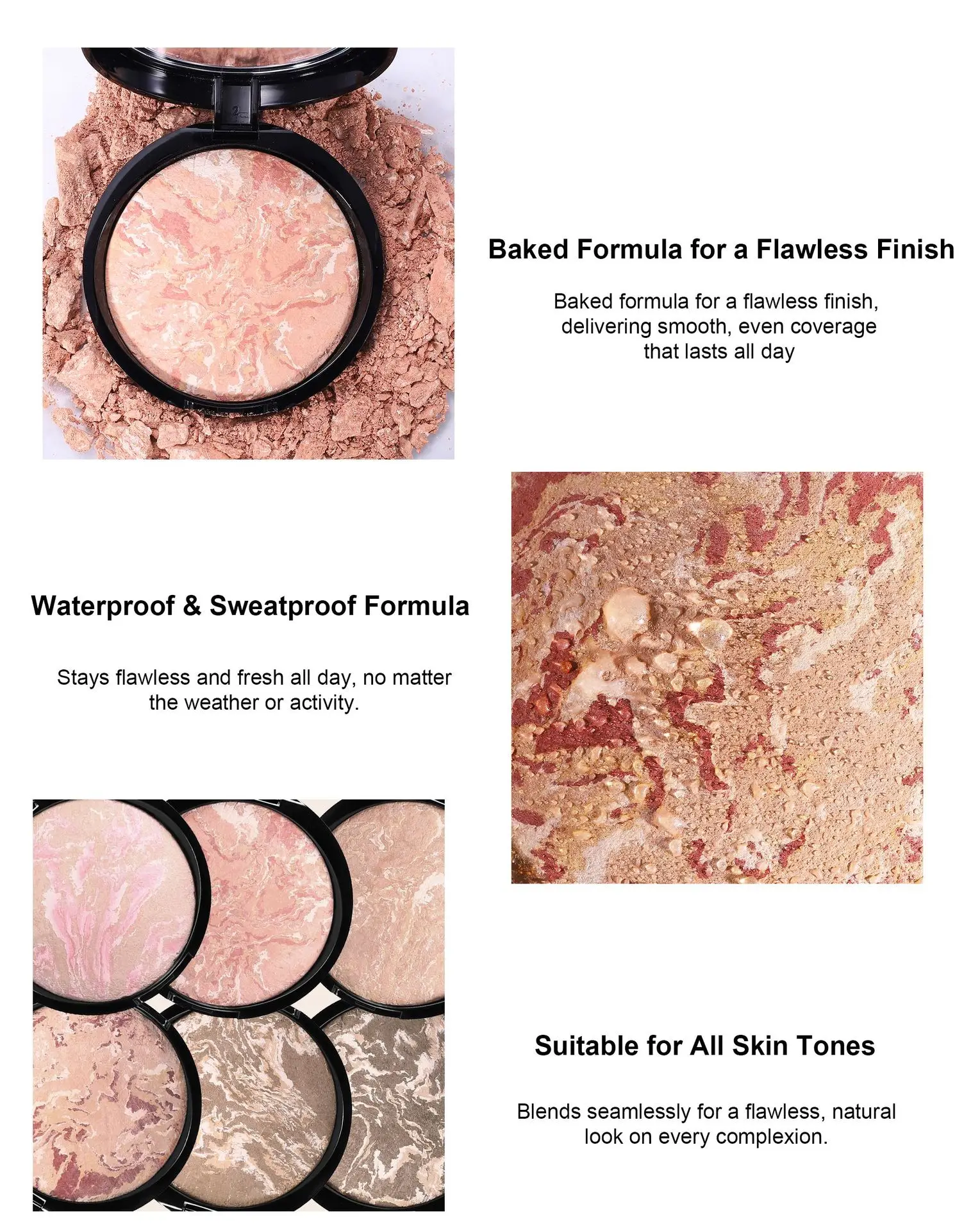 ☆Polvo bronceador compacto horneado con efecto mármol