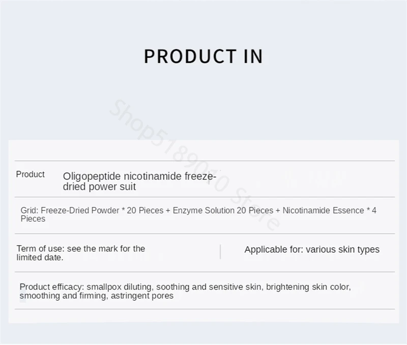 Polvo liofilizado*20 piezas + Lisozima 20 piezas + Esencia de niacinamida*4 piezas