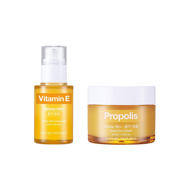 -Ampolla Good Skin con vitamina E: esta ampolla ultra nutritiva combina vitamina E, aceite de semilla de macadamia, aceite de oliva, aceite de semilla de jojoba y aceite de semilla de uva para brindar un impulso revitalizado de hidratación para una piel radiante y brillante.