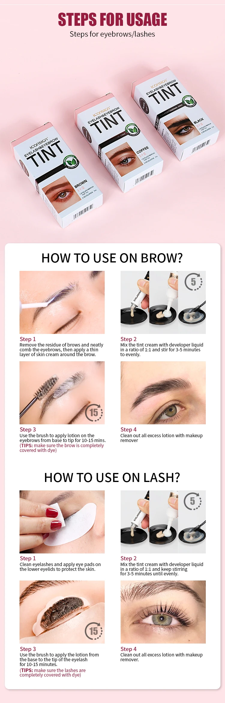 Kit de tinte para pestañas ICONSIGN para cejas, resistente al agua, 15 minutos de duración, para realzar las cejas y mantener el maquillaje de larga duración.