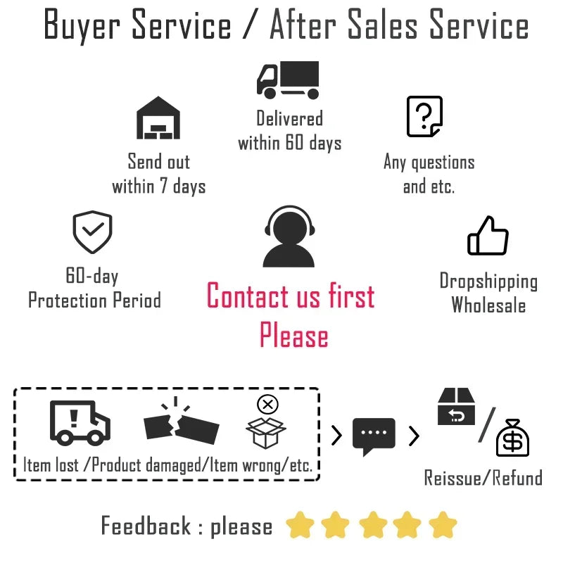 Sobre la logística: (1) Si no lo recibe dentro del tiempo especificado, comuníquese conmigo lo antes posible y no abra una disputa. (2) Si tiene alguna pregunta, comuníquese conmigo lo antes posible y no dé comentarios negativos a voluntad. Los 2 anteriores dañarán mi tienda, comuníquese conmigo si tiene alguna pregunta, lo ayudaré a resolverla.