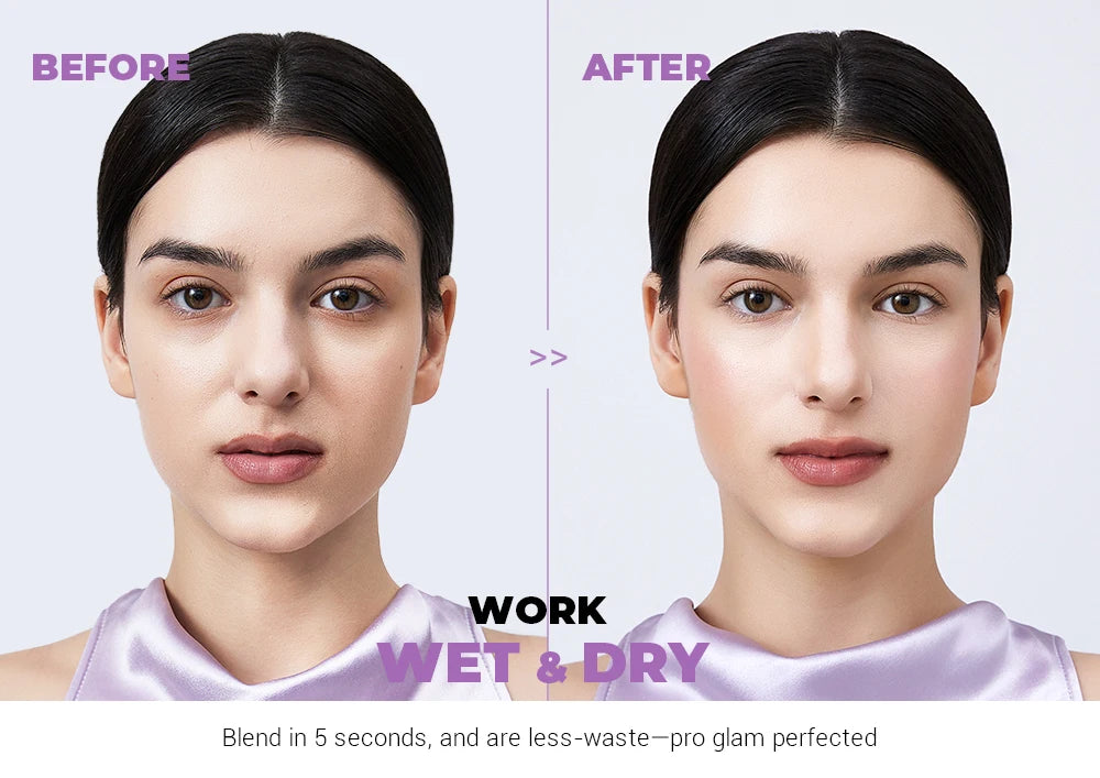 Borlas de doble acción para un acabado impecable: El set de 2 borlas Jessup My Magical incluye una borla para base de maquillaje en cojín Rubycell y una borla triangular para polvos de terciopelo ultrasuave. Juntas, ofrecen un acabado aerografiado, difuminan el maquillaje en 5 segundos y funcionan igual de bien con productos húmedos o secos. Tanto si aplicas base líquida como polvos fijadores, estas esponjas y borlas de maquillaje te ofrecen una cobertura suave, precisa y sin apelmazamiento que dura todo el día.