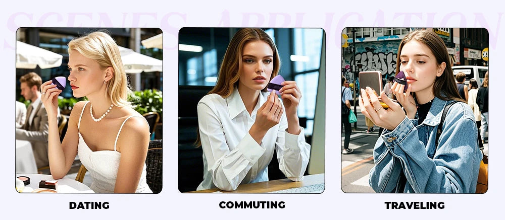 Portátiles, reutilizables y listas para usar: Compactas y fáciles de llevar, estas borlas funcionan en seco o húmedo y se limpian rápidamente. Con tonos lilas de ensueño y formas adorables, son perfectas para retoques rápidos. Un capricho de belleza ideal para adolescentes, principiantes del maquillaje o amantes de la belleza que adoran herramientas prácticas y con estilo. Ideales para maquillaje natural con brillo, piel radiante, looks nude o mate: tu set de borlas ideal para un look glamuroso a diario.
