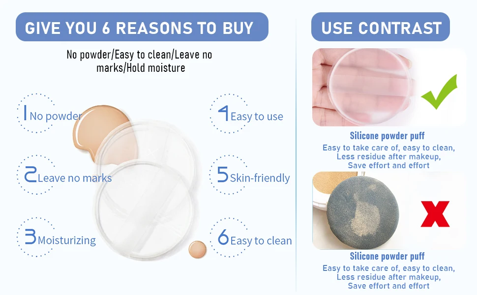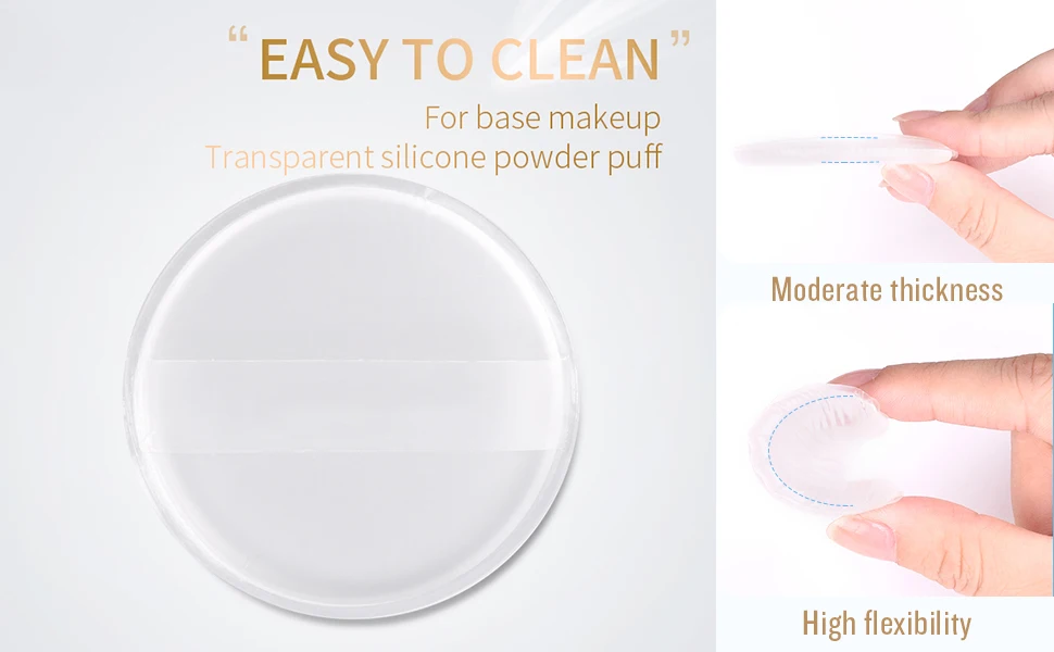 Nombre del producto : Esponja de silicona suave para polvos, para base de maquillaje, crema BB, sin polvos, herramientas de maquillaje.
