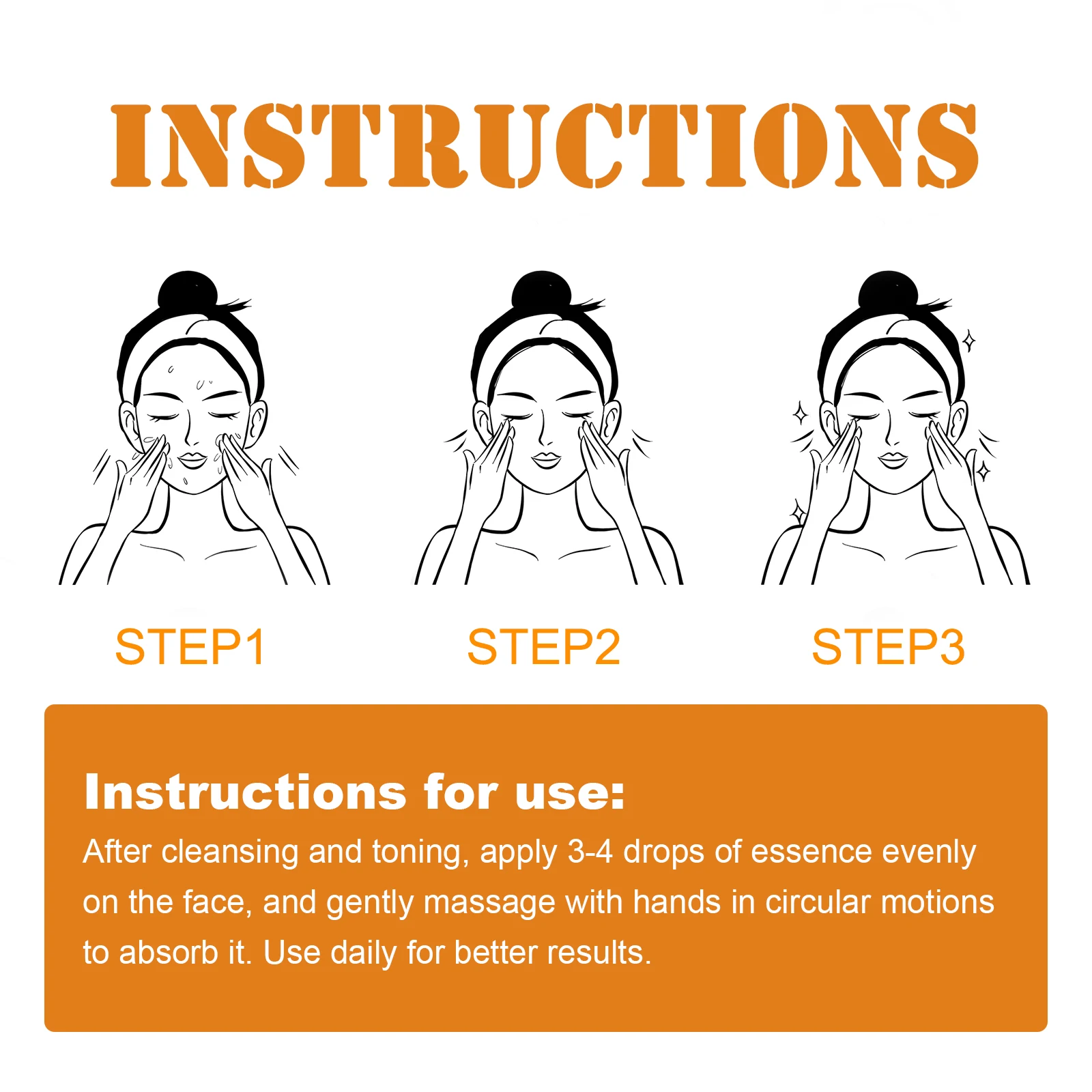 Esencia de vitamina C, hidratante profunda, antioxidante para la piel, mejora la opacidad, reduce la deposición de melanina, unifica el tono de la piel y aporta luminosidad.