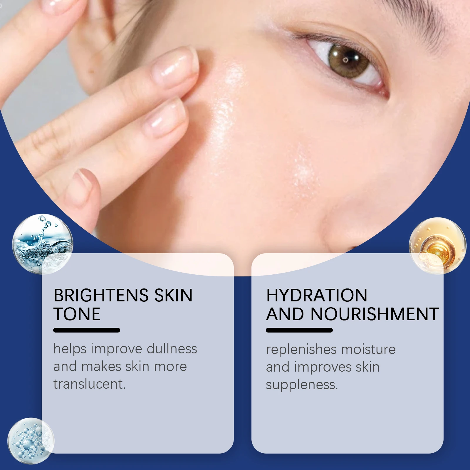 ● Función: Aumenta el colágeno de la piel / Piel tersa / Antienvejecimiento y arrugas / Aclara la piel / Eliminación de manchas oscuras / Atenúa líneas finas / Mantiene la piel hidratada / Eliminación de melanina pigmentada