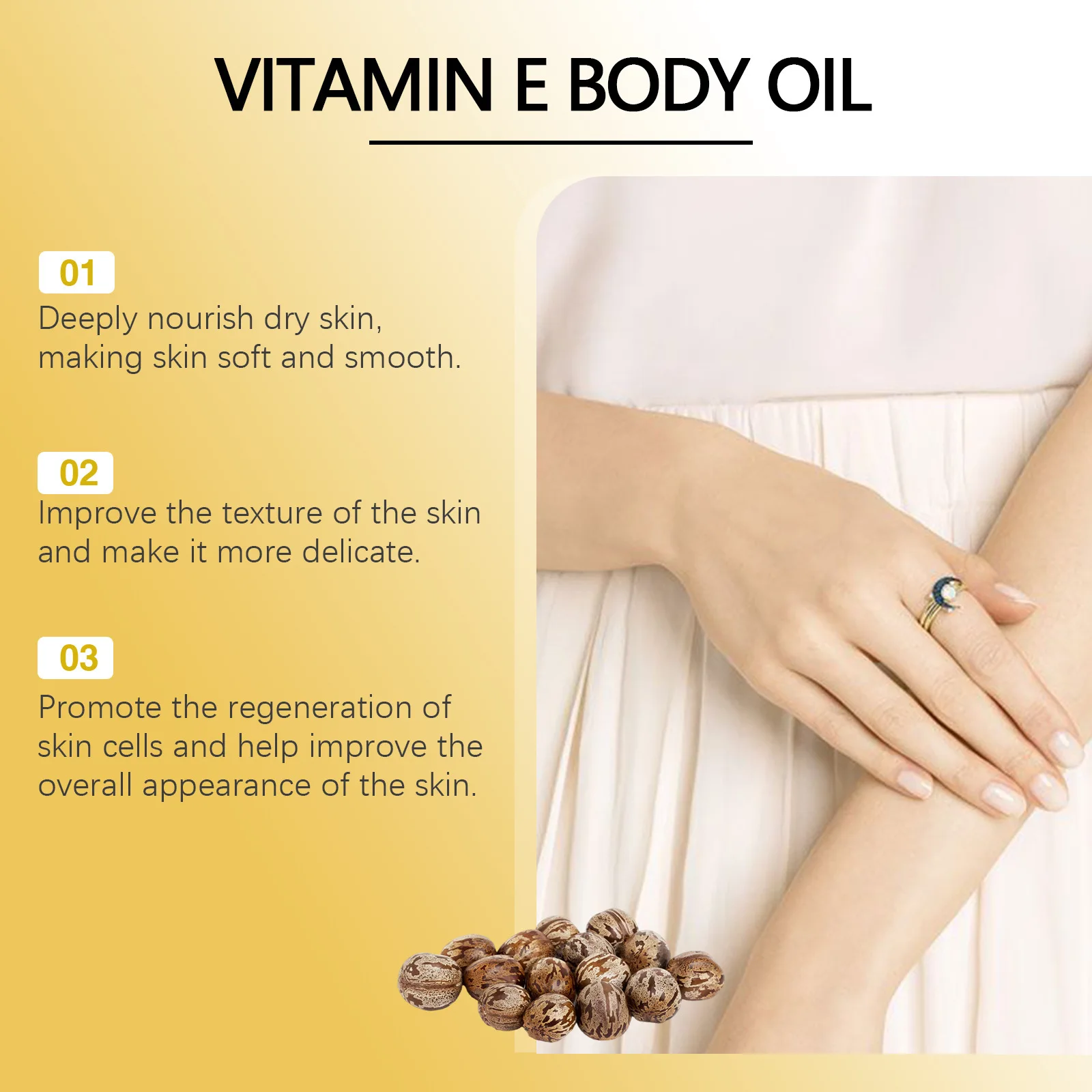 Vitamina E en aceite hidratante cuidado de la piel aclarante reafirmante masajeador corporal aumenta la elasticidad de la piel Vitamina E para aclarar la piel
