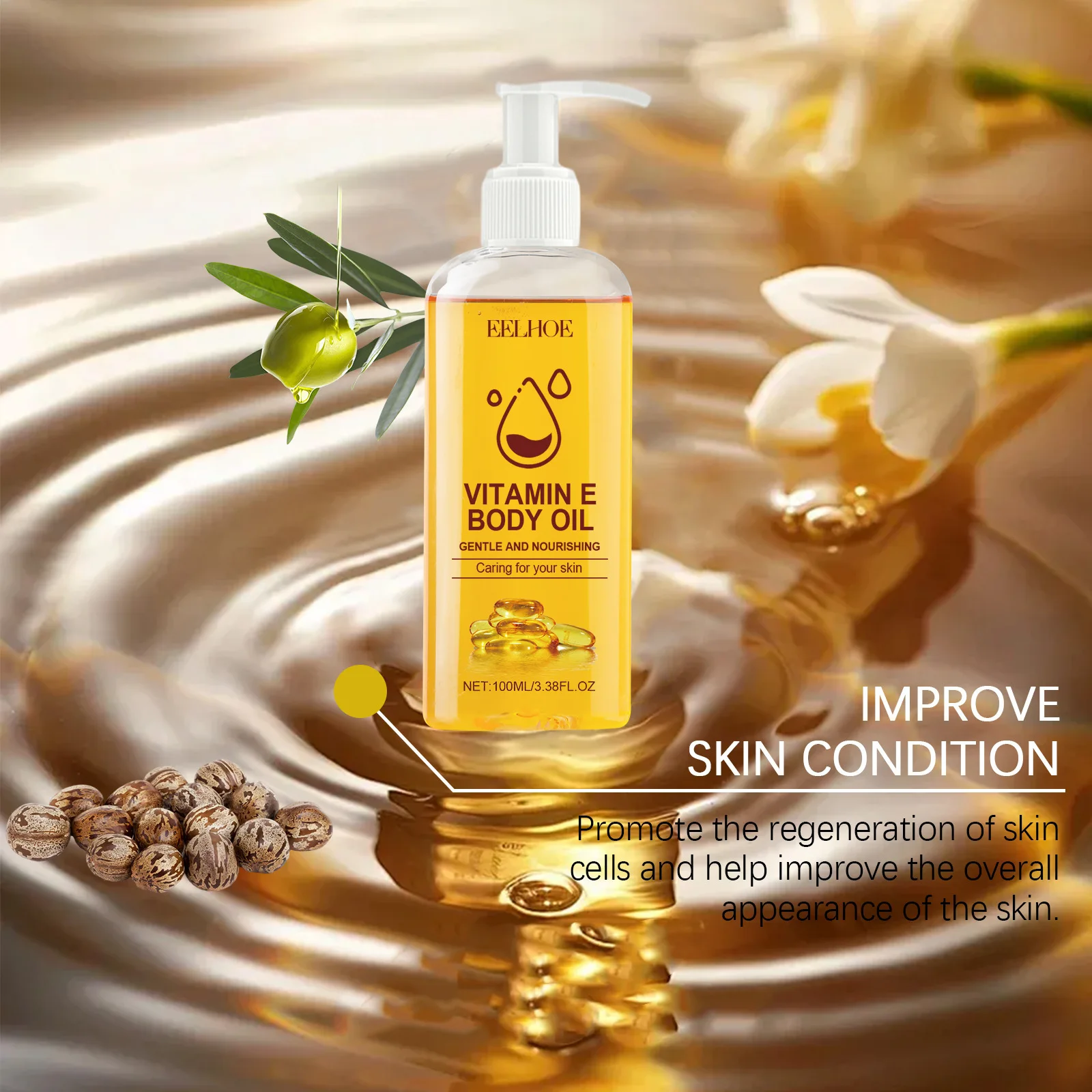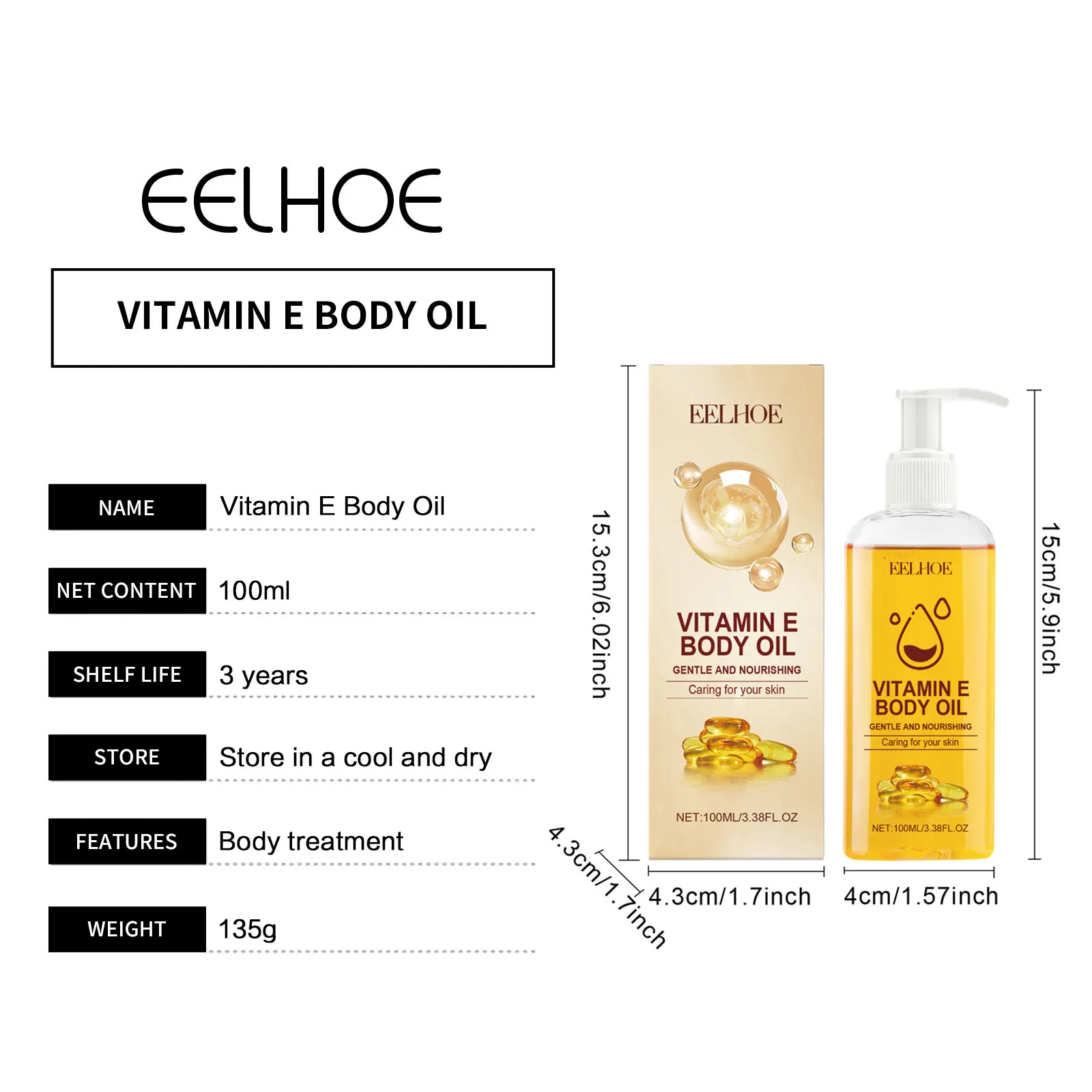 EELHOE Vitamina E en aceite hidratante para el cuidado de la piel, aclarante, reafirmante, masajeador corporal, aumenta la elasticidad de la piel, vitamina E para aclarar la piel, 100 ml