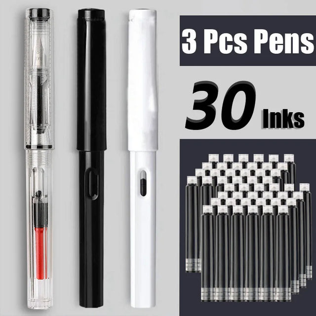 Juego de 33 plumas estilográficas Kawaii con tinta reemplazable, tinta negra, azul y roja EF de 0,38 mm, bolígrafos escolares, material de oficina, papelería para escribir.