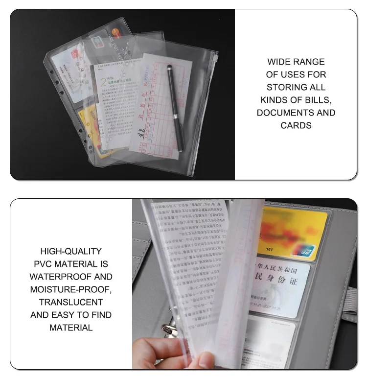 Bolsa de almacenamiento de PVC transparente con cremallera, antioxidante, mate, tamaño A5/A6, carpeta de información para guardar dinero, material escolar y de oficina, 5 unidades - A5 (20 agujeros) está agotado y se enviará tan pronto como vuelva a estar disponible.