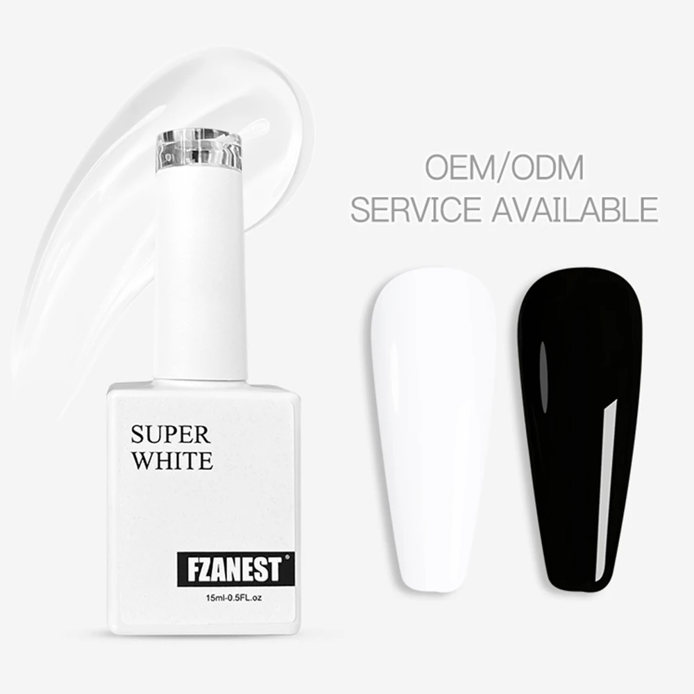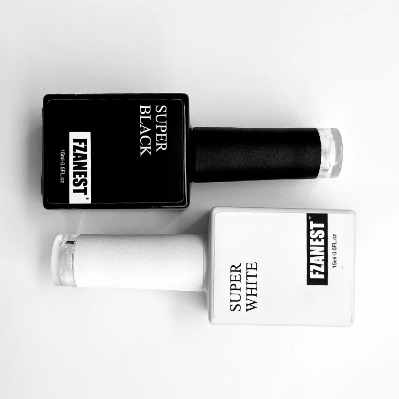 FZANEST Esmalte de uñas en gel súper negro de alta pigmentación, laca de uñas en gel UV LED, color blanco y negro puro, para decoración de uñas