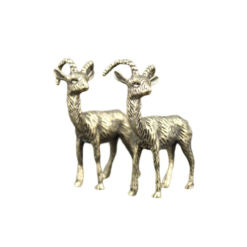 Estatua decorativa para coche, adornos en miniatura, escultura de cabra de latón retro, escritorio de oficina, vaca rica, pequeños regalos creativos.
