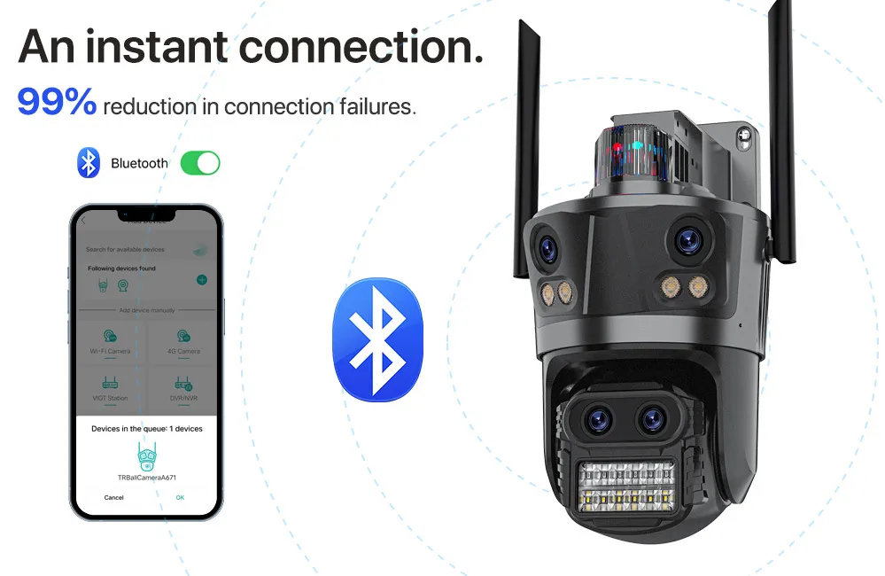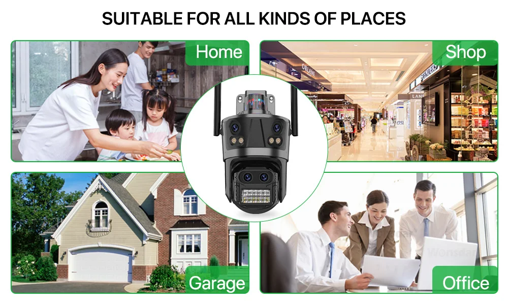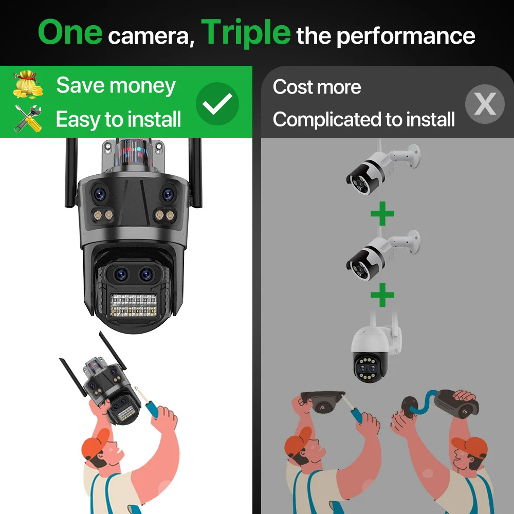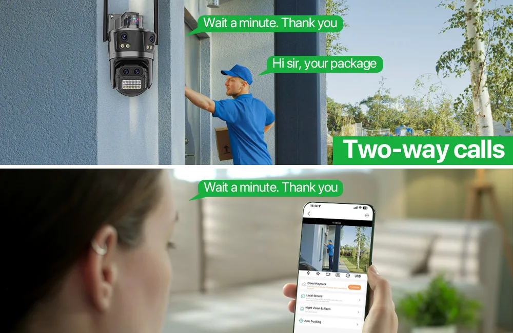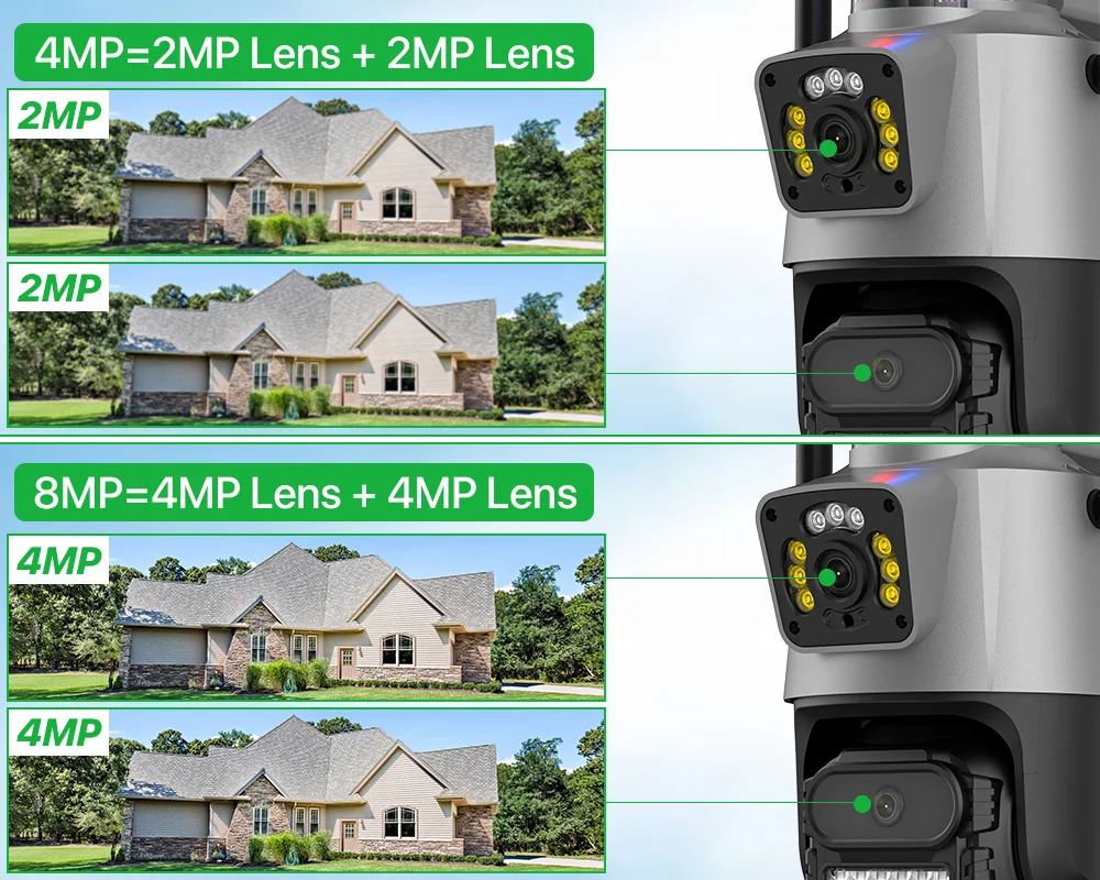 Cámara de vigilancia WiFi 8K con zoom 8X para exteriores, cuatro lentes, PTZ, IA, seguimiento humano, CCTV inalámbrica