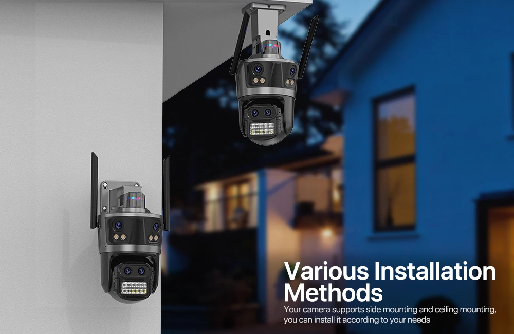 La cámara admite montaje lateral y montaje en techo, puede instalarla según sus necesidades.