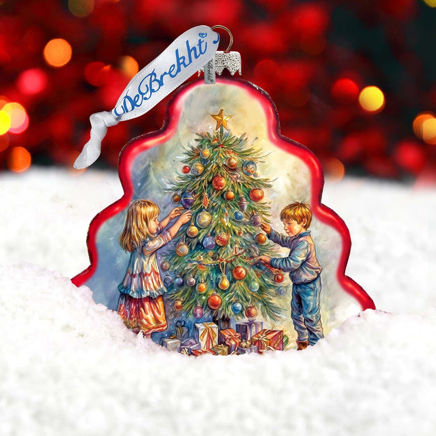 El adorno de vidrio "Amor entre las ramas" de G. Debrekht es el complemento perfecto para cualquier decoración navideña. Elaborado con vidrio resistente, este hermoso adorno presenta una imagen divertida de niños decorando su árbol de Navidad. Dale un toque de diversión a tu celebración con este adorno festivo.
