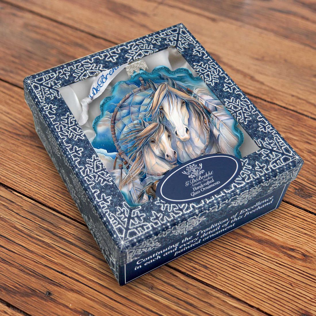 Adorno de cristal con forma de corona de viaje "Mustangs Dream Catcher Journey" de J. Bergsma - Decoración navideña con temática de vida silvestre - 759-637-JB
