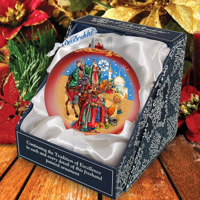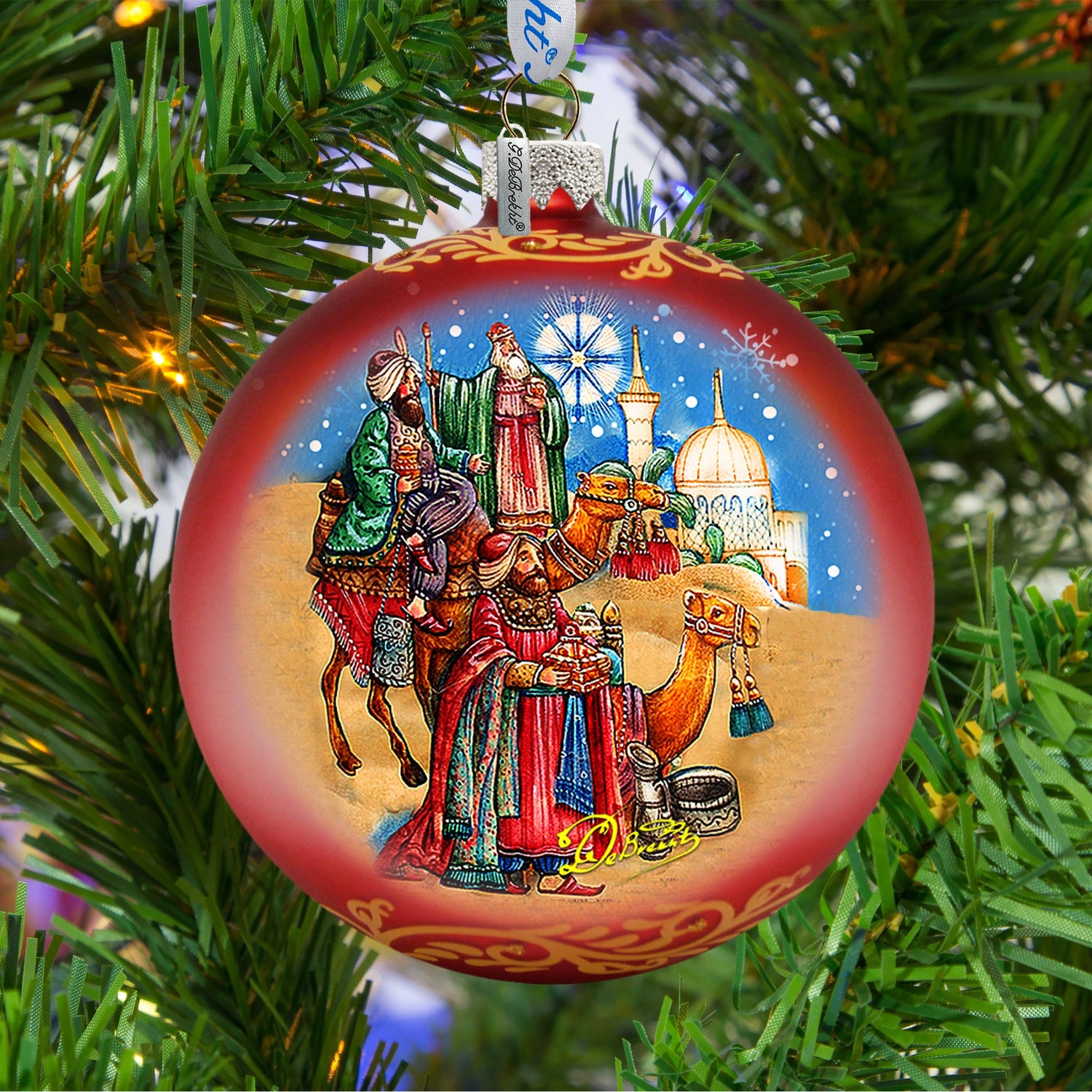 Adorno de cristal con forma de bola de los Reyes Magos de G. DeBrekht - Decoración navideña para la Natividad - 73551